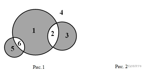 Версия для печати и копирования в MS WordНа рис. 1 изображены три круга. Они разбивают плоскость на шесть частей. На свободном поле справа, обозначенном как рис. 2, нарисуйте три круга так, чтобы они разбивали плоскость на четыре части.
