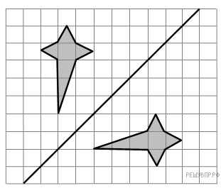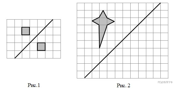 На рис. 1 на клет­ча­той бу­ма­ге изоб­ра­же­ны фи­гу­ры, сим­мет­рич­ные от­но­си­тель­но изоб­ражённой пря­мой. На­ри­суй­те на рис. 2 фи­гу­ру, сим­мет­рич­ную за­штри­хо­ван­ной фи­гу­ре от­но­си­тель­но дан­ной пря­мой.