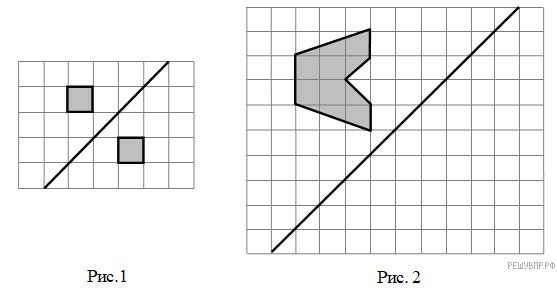 На рис. 1 на клет­ча­той бу­ма­ге изоб­ра­же­ны фи­гу­ры, сим­мет­рич­ные от­но­си­тель­но изоб­ражённой пря­мой. На­ри­суй­те на рис. 2 фи­гу­ру, сим­мет­рич­ную за­штри­хо­ван­ной фи­гу­ре от­но­си­тель­но дан­ной пря­мой.