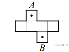 Версия для печати и копирования в MS WordНа нижней грани куба отмечена точка A, а на верхней — точка B (рис. 1). На развёртке куба (рис. 2) отмечена точка А. Отметьте на развёртке точку B.