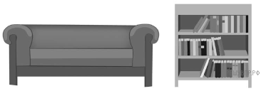 На рисунке изображены диван и шкаф. Высота дивана 80 см. Какова примерная высота шкафа? Ответ дайте в сантиметрах.