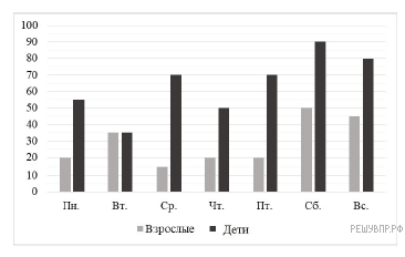 На диаграмме показано, сколько посетителей было в краеведческом музее в течение недели. Сколько детей побывало в музее в субботу и воскресенье в сумме?
