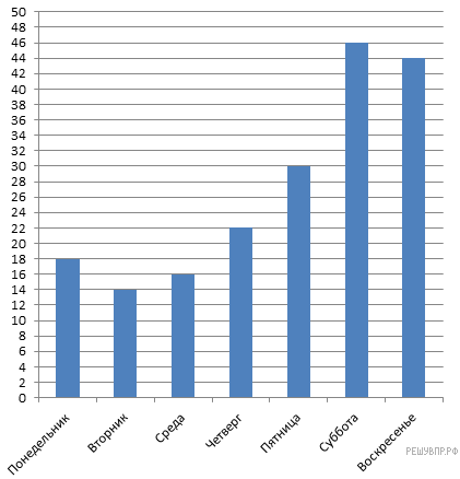На диаграмме представлены данные о количестве посетителей шашечного клуба за неделю. По вертикали указано количество посетителей. Сколько человек посетило клуб с четверга по субботу?