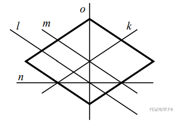 На рисунке изображён ромб, проведены его ось симметрии и несколько других прямых. Какая из прямых является осью симметрии ромба?