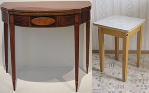 На рисунке изображены стол и табуретка. Высота табуретки составляет 0,6 м. Определите примерную высоту стола в метрах (с точностью до десятых). Единицы измерения указывать не нужно. Считайте, что фотографии выполнены с одинакового расстояния при одном и том же увеличении.